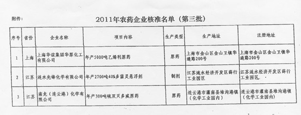 南龍滅多威,硫雙威農(nóng)藥核準(zhǔn)企業(yè)公告